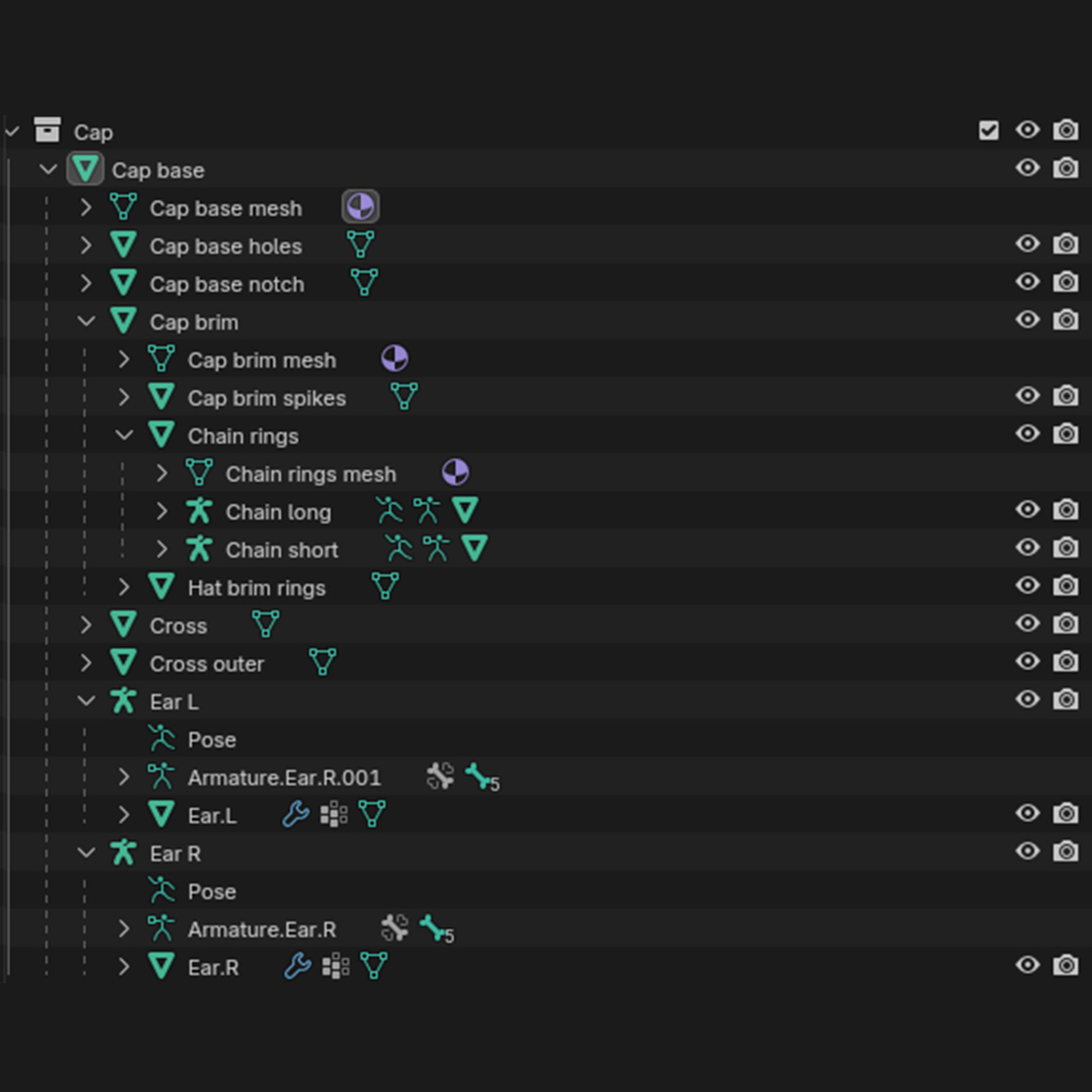 • Separate meshes for easy material swap