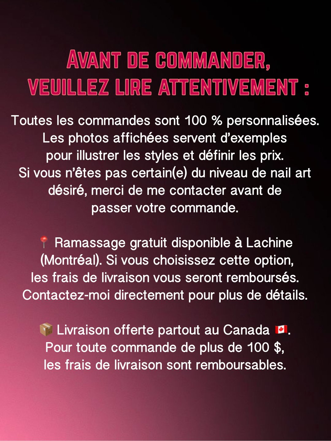 Merci de faire confiance à une artiste locale. Chaque commande me permet de vivre de ma passion et de te faire briller jusqu’au bout des doigts!