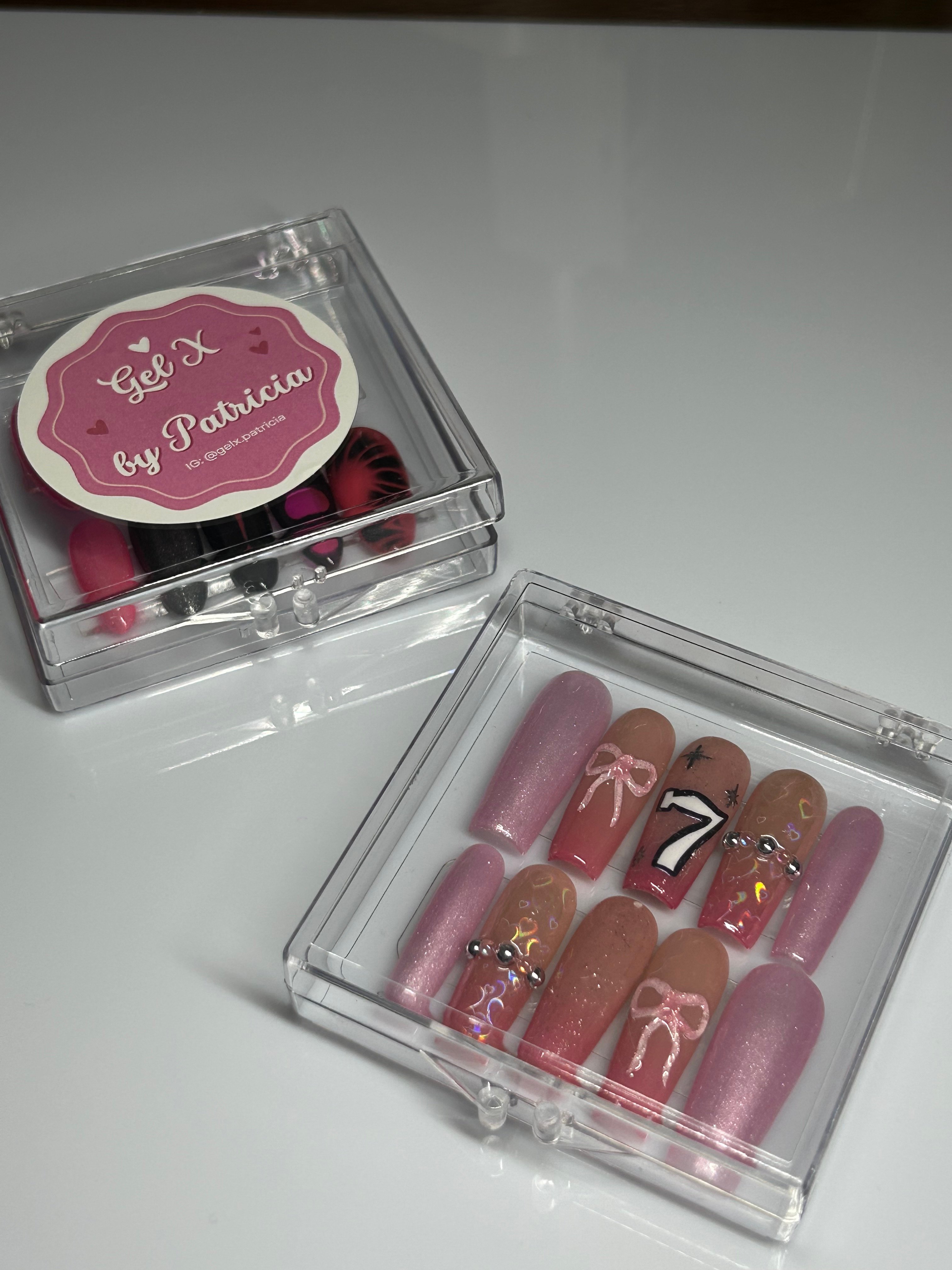Salut! Moi c’est Patricia, la créatrice derrière @gelx.patricia. Je suis une artiste née à Montréal, où j’ai grandi entourée d’art grâce à mes parents. Depuis toujours, je suis passionnée par le dessin et la photographie, et aujourd’hui, j’exprime cette créativité à travers des press-on nails 100 % faits à la main.