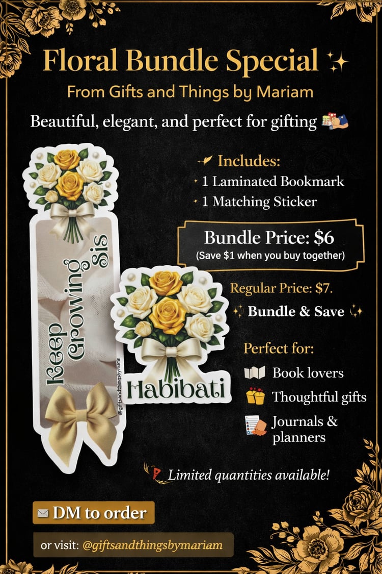 We are a small business providing Magnetic & Standard Islamic Bookmarks, Keychains, Stickers, Conference Supplies, and Digital Printable Journals/Notebooks.