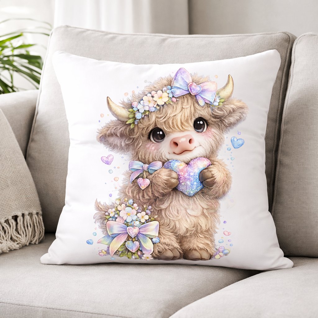 Cute highland cows x 4 plus x 4 cushion mock ups PNG