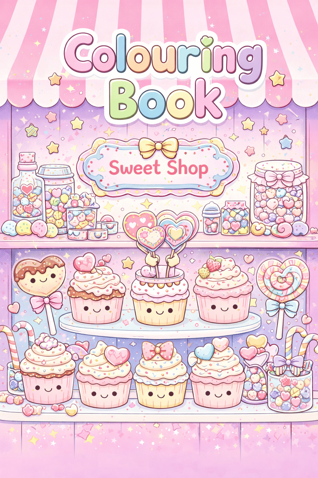 Sweet shop colouring book PDF WITH A CHOICE OF X 2 FRONT PAGES.