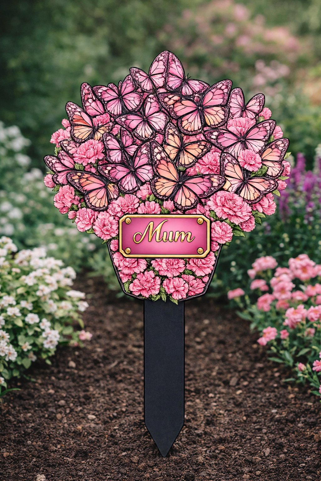 x 2 Floral grave marker for Mum and a blank version with butterflies and roses PNG