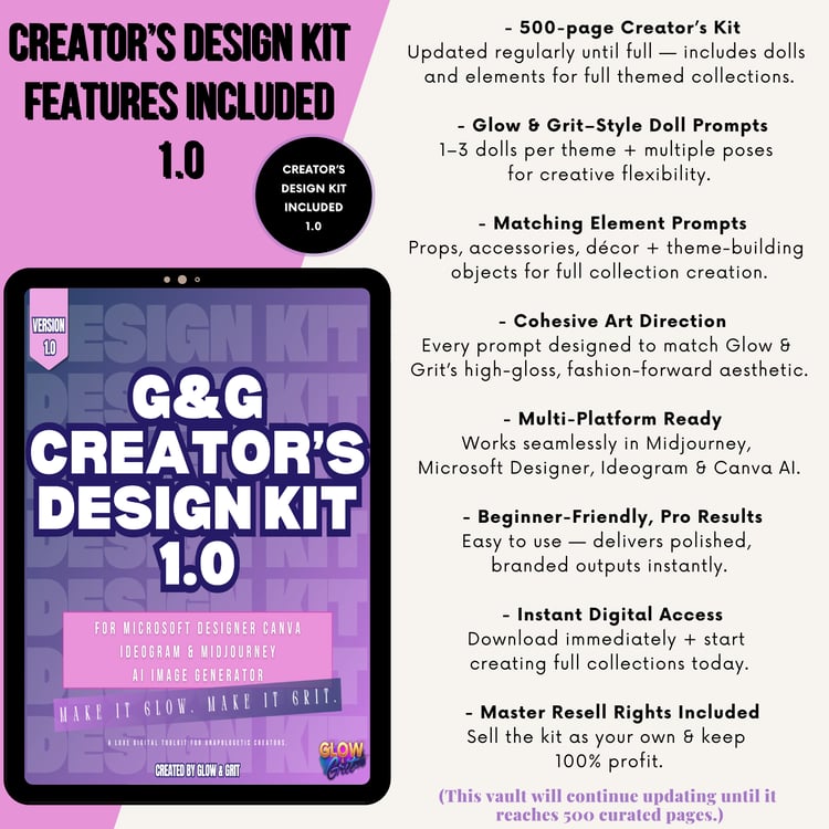 Explore every Glow & Grit creation — bold, luxe, and unapologetically made for designers who hustle with heart.
