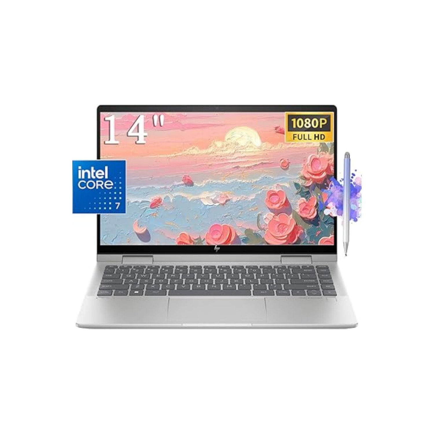 Hp 2024 Envy 2-in-1 14-Zoll-FHD-Touchscreen-Laptop, Core 7 150U (Bests i7-1355U), Wi-Fi 6E, FP Reader, Natural Silver, Backlit KB, BT 5.3, Win11 W/Stylus Pen (16 GB RAM | 2 TB SSD + Stift)