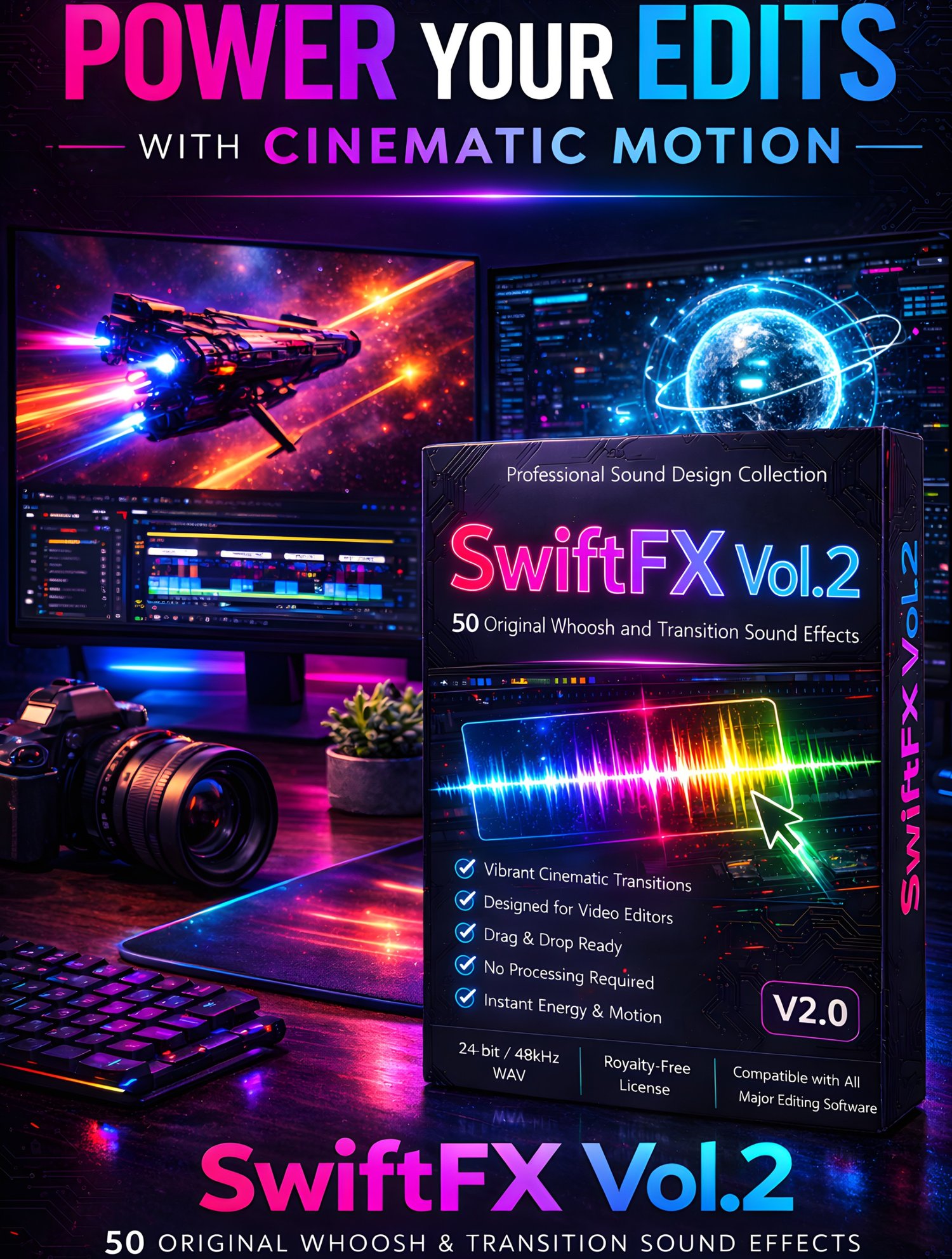 Perfect for YouTube videos, social media content, film editing, motion design, commercials, apps, and games—The SwiftFX Sound Effects Collection is built for creators who want their edits to feel more dynamic, immersive, and professional.
