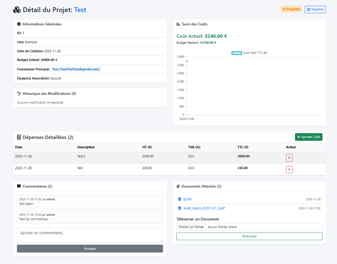 – Features: project management, charts, budget management, supplier management, statistics, teams and more (+5).