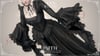 A long lacy dress with a ribbon choker, chain necklace with crosses and a matching leg harness.