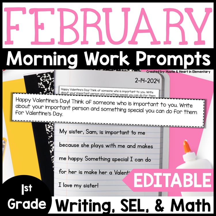 This resource quickly became a game-changer in the morning work department and I couldn’t wait to share it with other teachers. These are the prompts that I will be using with my first grade students in February, and I plan to have a set for each month in the school year. The predictable routine is perfect for my students, and the flexibility and changing daily prompts keep review interesting, fun, and effective!
