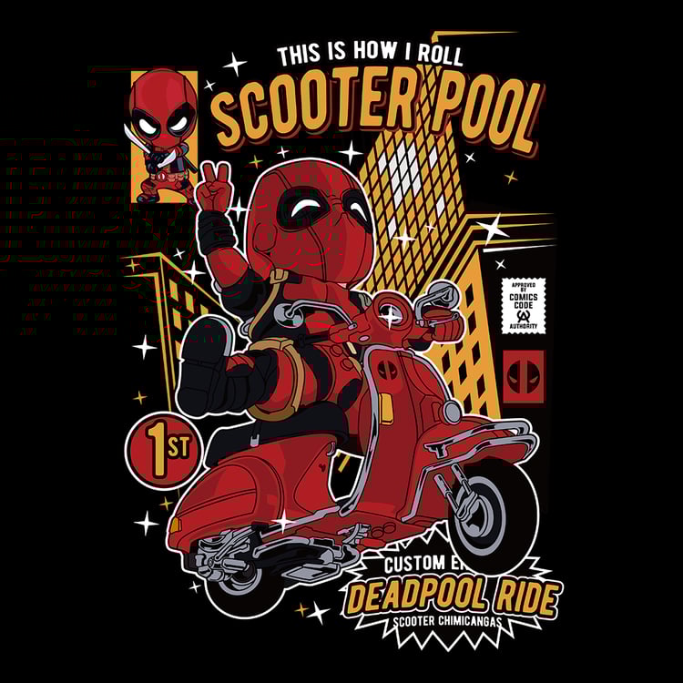 DESIGN VECTOR CHIBI DEADPOOL SCOOTER
