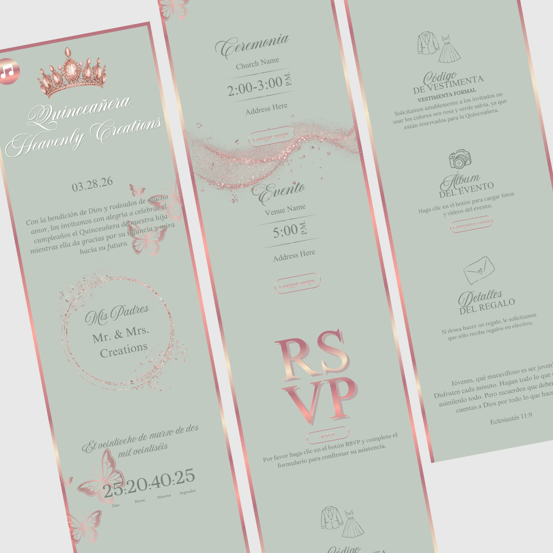 This listing is for a fully customized interactive event website designed to beautifully share all of your quinceañera details in one place.