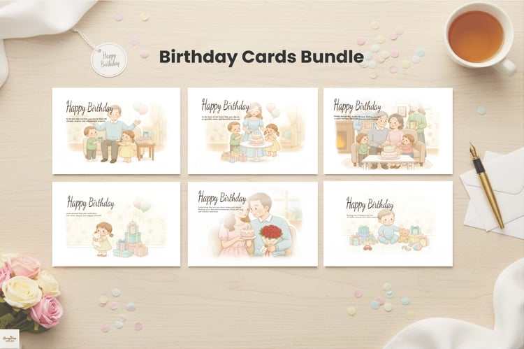 Printable Birthday Cards | Family Art Designs | (Instant Download)