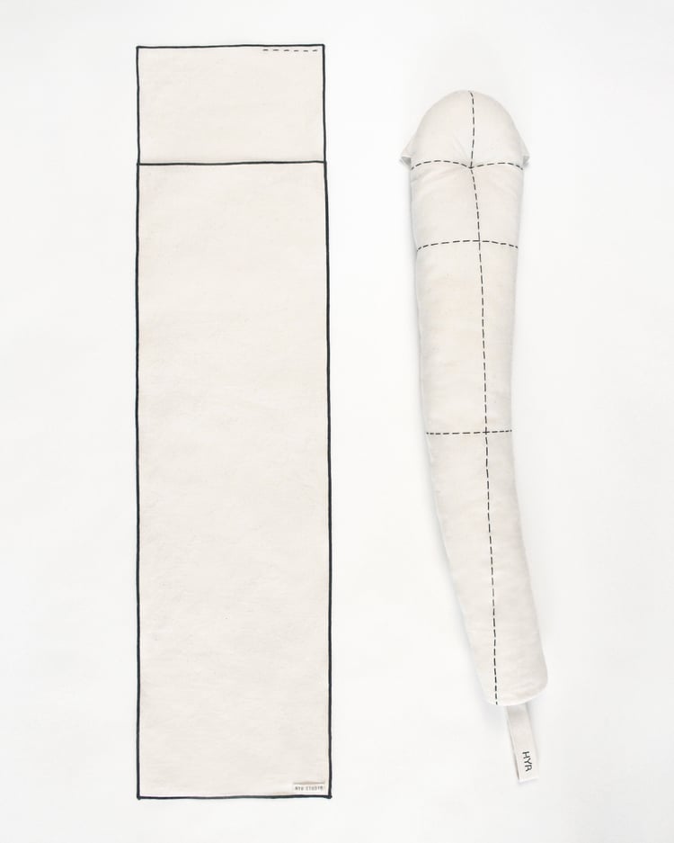 We primarily use washed and bleached calico cotton, sometimes blended with small amounts of polyester or elastic for durability.