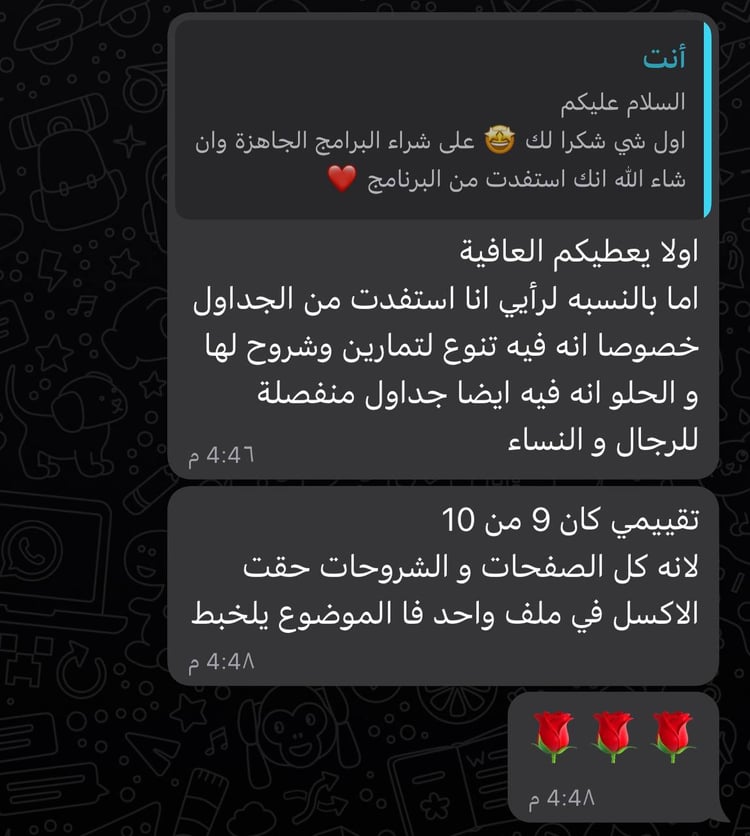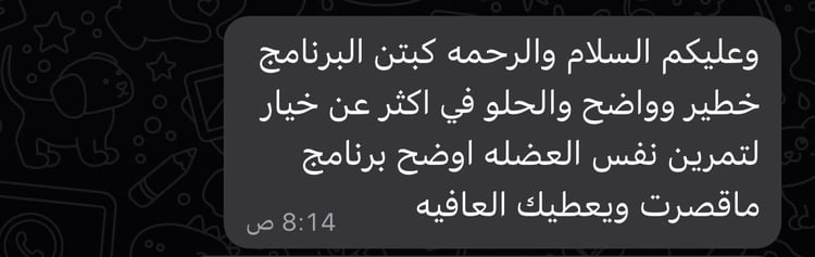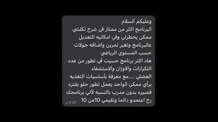 وعليكم السلام جدا استفدت من جميع النواحي وتطور في جسمي ملحوظ بشكل عالي والتغذيى جميلة و سهلة من ناحية الماكروز