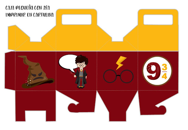 Esta caja debe imprimirse dos veces y luego unirse para que quede completa. Las solapas de arriba van luego encajadas en las asas.