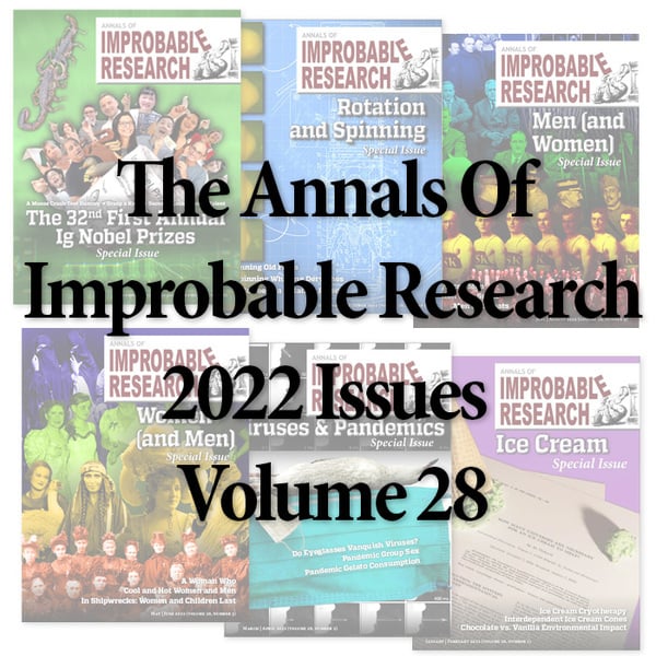 Real research, about anything and everything, from everywhere — research that’s maybe good or bad, important or trivial, valuable or worthless. Compiled for you, by the producers of the Ig Nobel Prize ceremony. Six (6) new Improbable magazine issues every year!