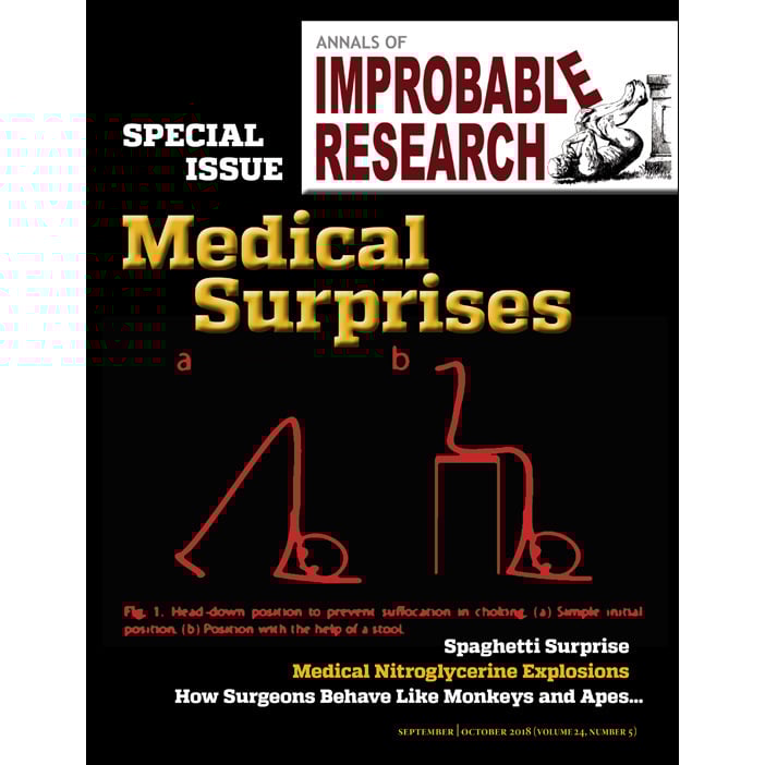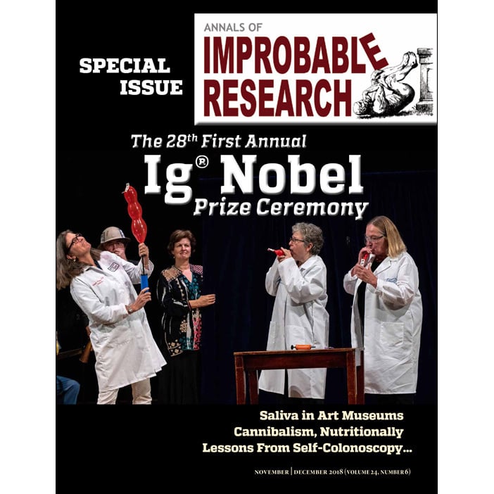 Real research, about anything and everything, from everywhere — research that’s maybe good or bad, important or trivial, valuable or worthless. Compiled for you, by the producers of the Ig Nobel Prize ceremony. Six (6) new Improbable magazine issues every year!