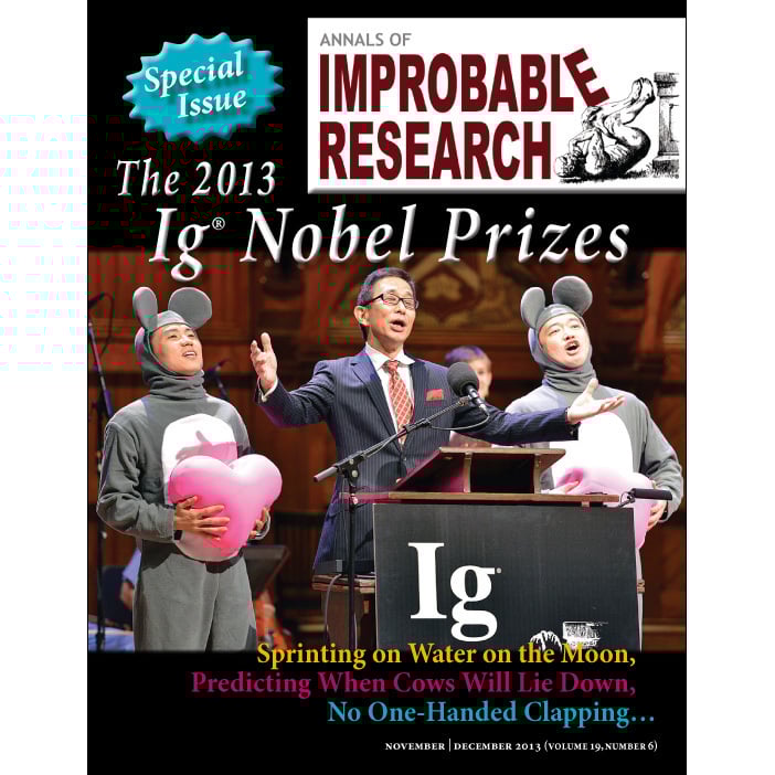 Real research, about anything and everything, from everywhere — research that’s maybe good or bad, important or trivial, valuable or worthless. Compiled for you, by the producers of the Ig Nobel Prize ceremony. Six (6) new Improbable magazine issues every year!