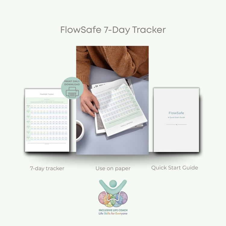 Built from experience, profession and knowing how sometimes a simple check can make all the difference to anxiety or overwhelm surrounding T.O.M. FlowSafe is a supportive self-awareness tool designed to help you protect your wellbeing and just feel more in control.