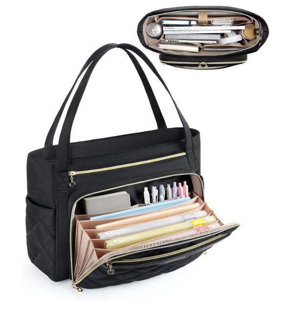 Stay organized and ready for anything with the BAGSMART Teacher Tote. Featuring a quilted design, insulated pocket, and space for a 15.6-inch laptop, it’s the perfect blend of style, function, and durability.