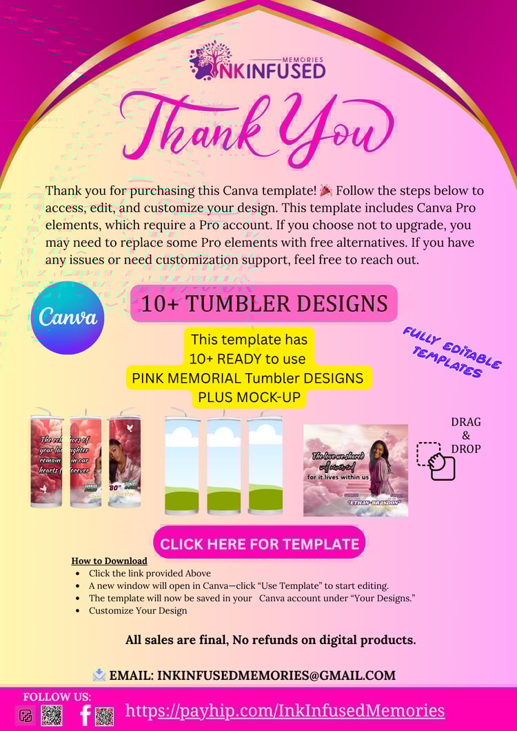 10 +PINK Tumbler Memorial Loving memories (CANVA)