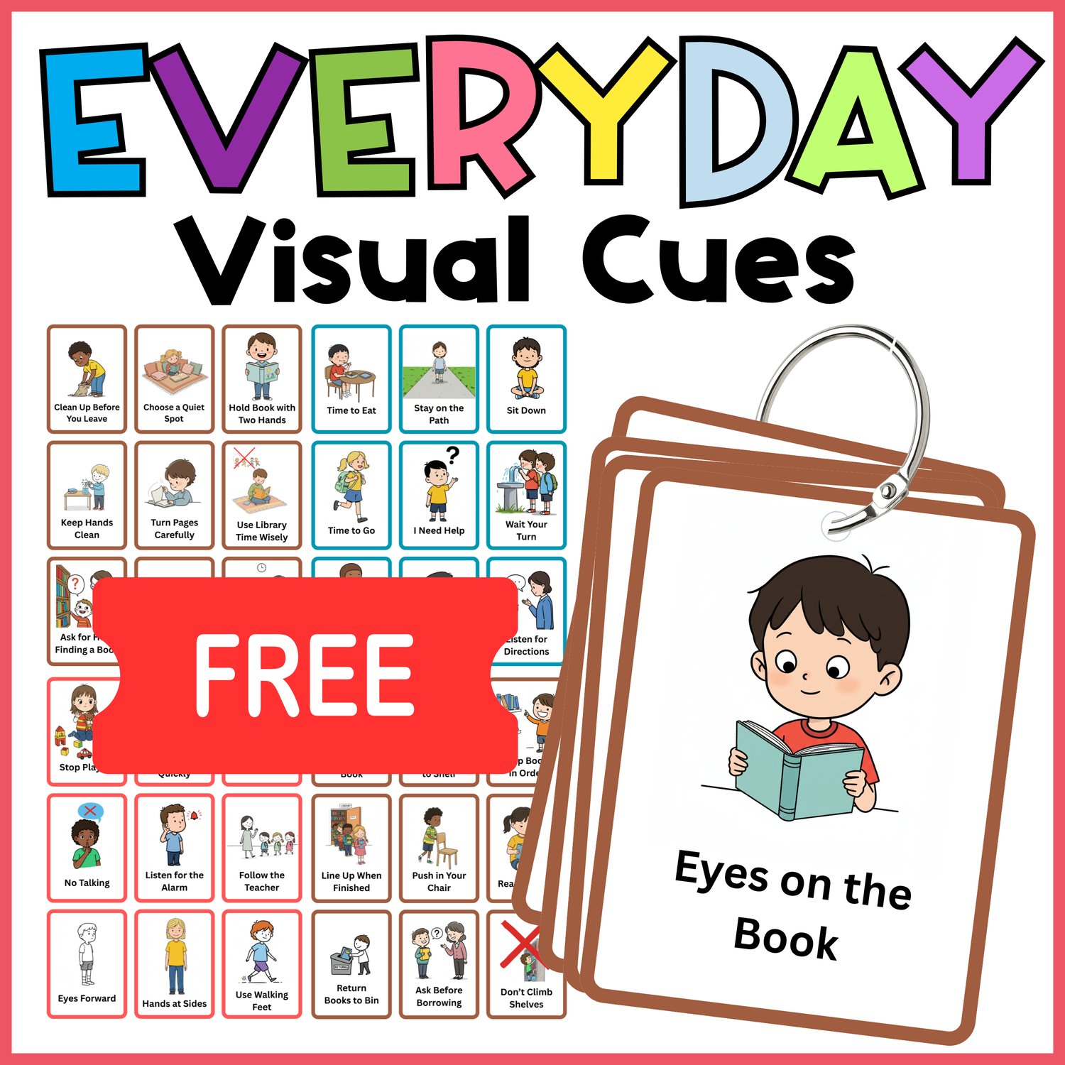 Looking for visual cue cards to support nonverbal communication and classroom routines? This free sample includes lanyard-sized visual cues from a variety of school settings, designed to help young learners and nonverbal students understand behavior expectations through simple, relatable images.