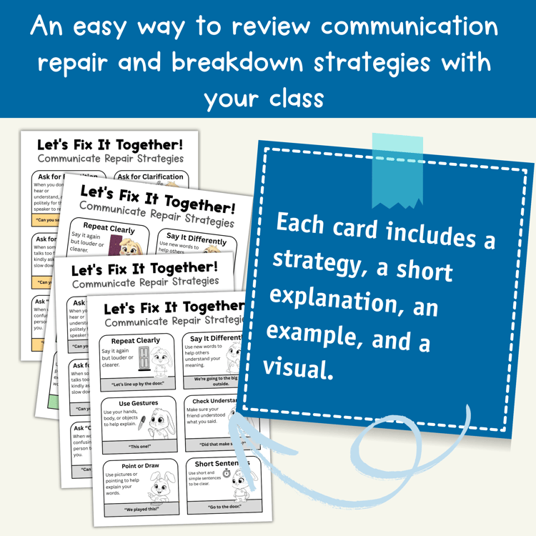 Each card uses cartoon-style drawings and clear language, with diverse characters so every child can see someone who feels familiar. These cues are easy to clip on a ring or lanyard and can be used during transitions, specials, or daily routines.