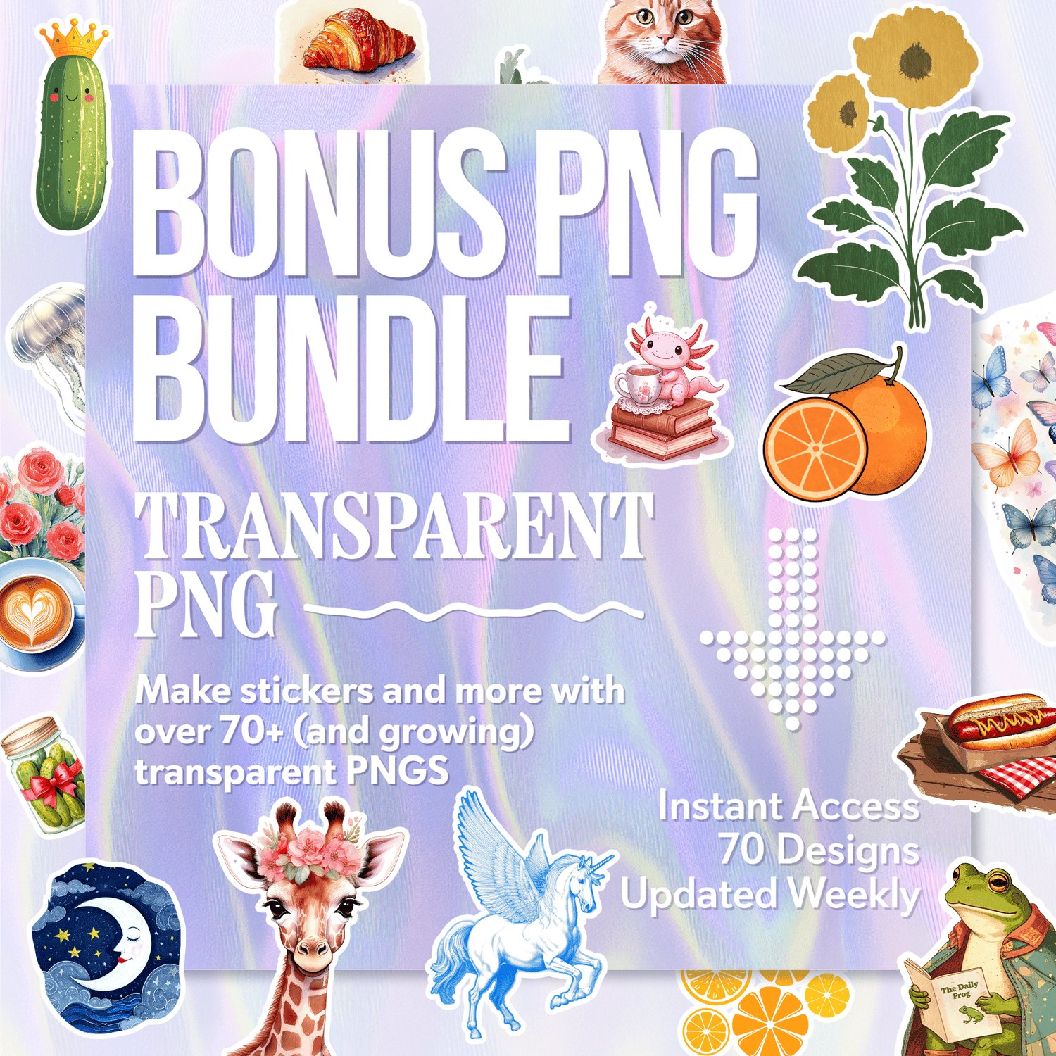 Also included 70+ transparent pngs, make stickers and use with cutting machines - the creative output is endless!