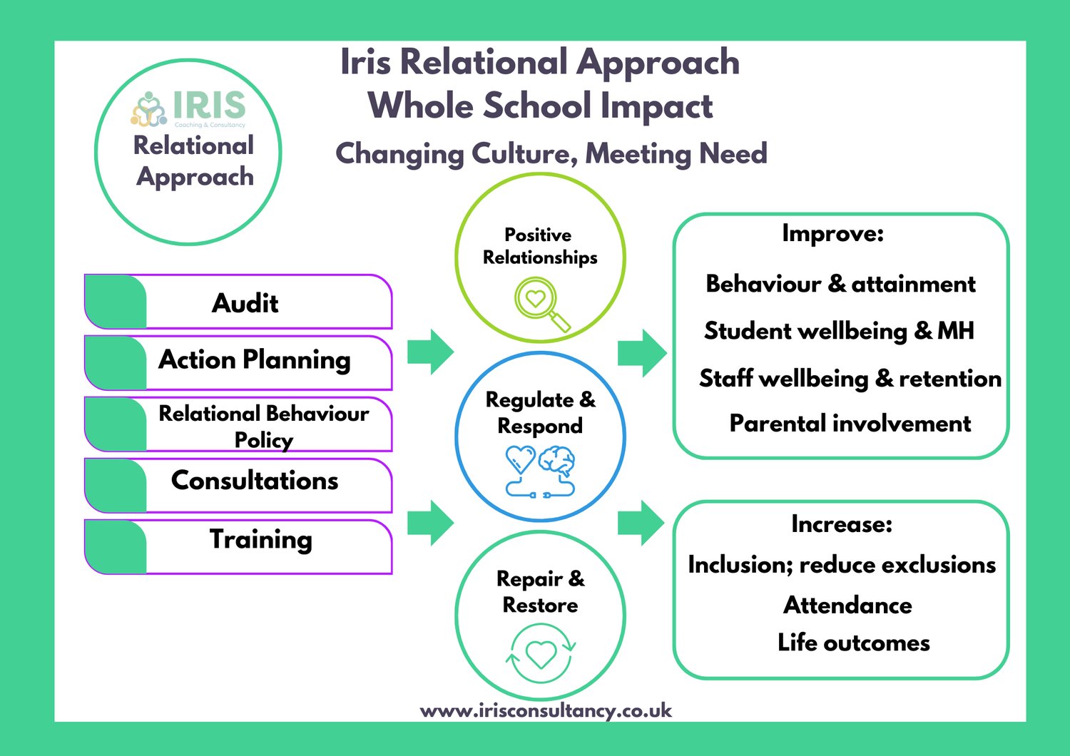 Iris Consultancy has taken the principles from the Relational Approach to develop a practical, straightforward, and effective audit. Designed for schools to self-evaluate how to improve and embed practices throughout the school based on a graduated response.