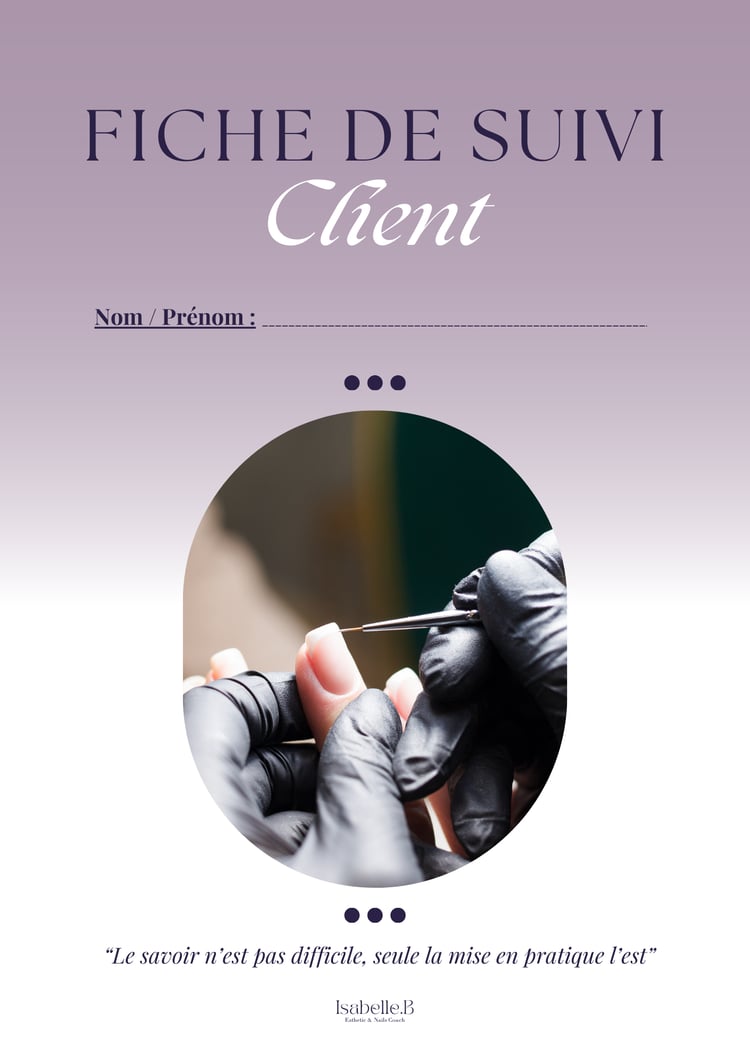 "Pour un suivi personnalisé et adapté aux ongles, la fiche suivi client est un outil indispensable; Vraiment très pratique elles vont me permettre de connaitre les ongles de mes clientes sur le bout des doigts"