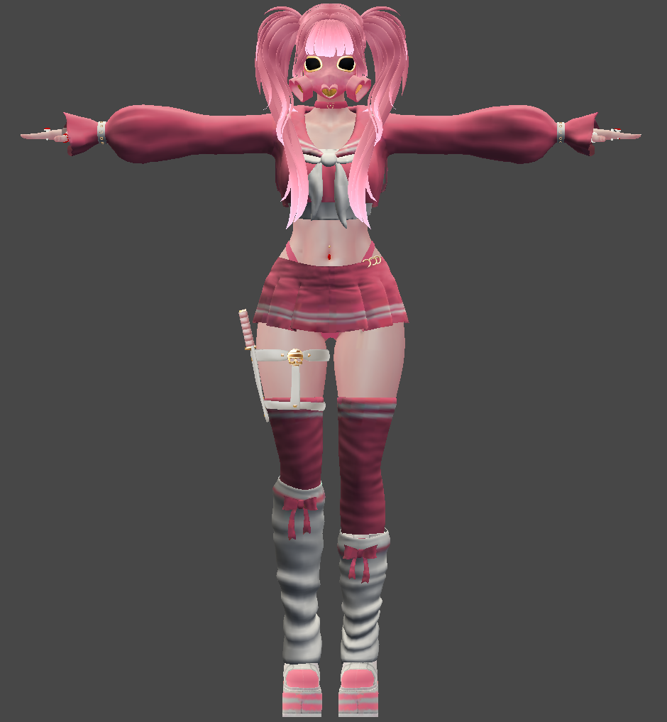 Head, Body, Blood Text, Sticker Sleeve (.Redzilla), Eye texture, Outfits, underwear, Garter & Knife, Shoes, hairclips, Bag, Hairs, Goggles, Mask (.Redzilla), Rings, Blood Bag, Bandage (.Redzila),