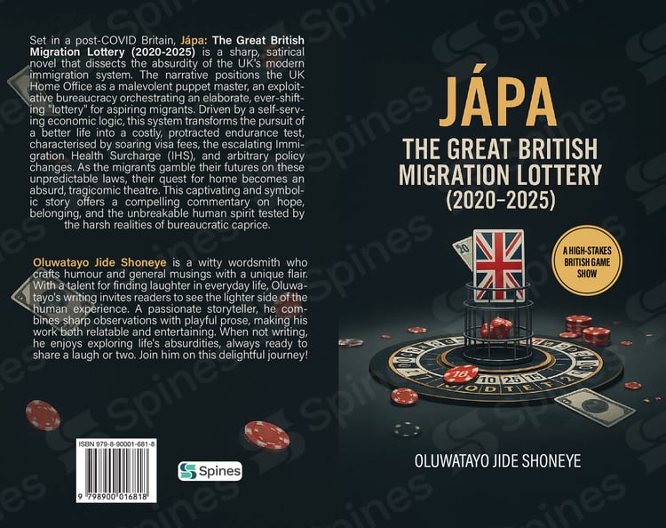 I wrote Jápa: The Great British Migration Lottery (2020–2025) not as a political critique, but as a testimony to the indomitable human spirit. This book is a work of satire, yes, but every absurdity—the soaring visa fees, the policy U-turns, the cynical monetisation of hope—is anchored in the very real, often heartbreaking experiences of migrants, myself included, who traded their stability for a chance at a better future.