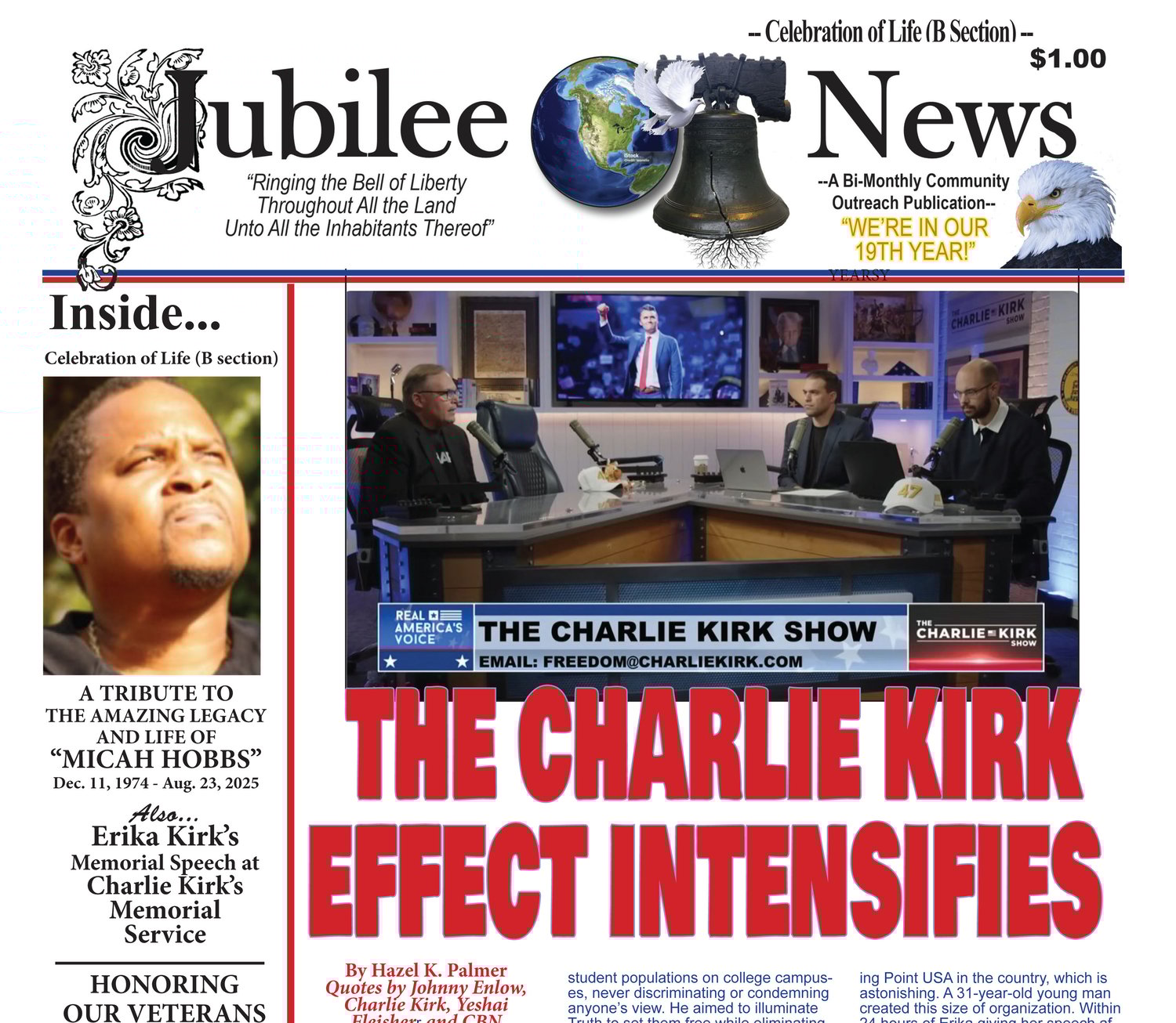 Hi! I'm Hazel Palmer and I publish stories that should be Front Page News that will inspire and amaze. We believe in the moral fiber of the United States of America and the founding principles “In God We Trust”,