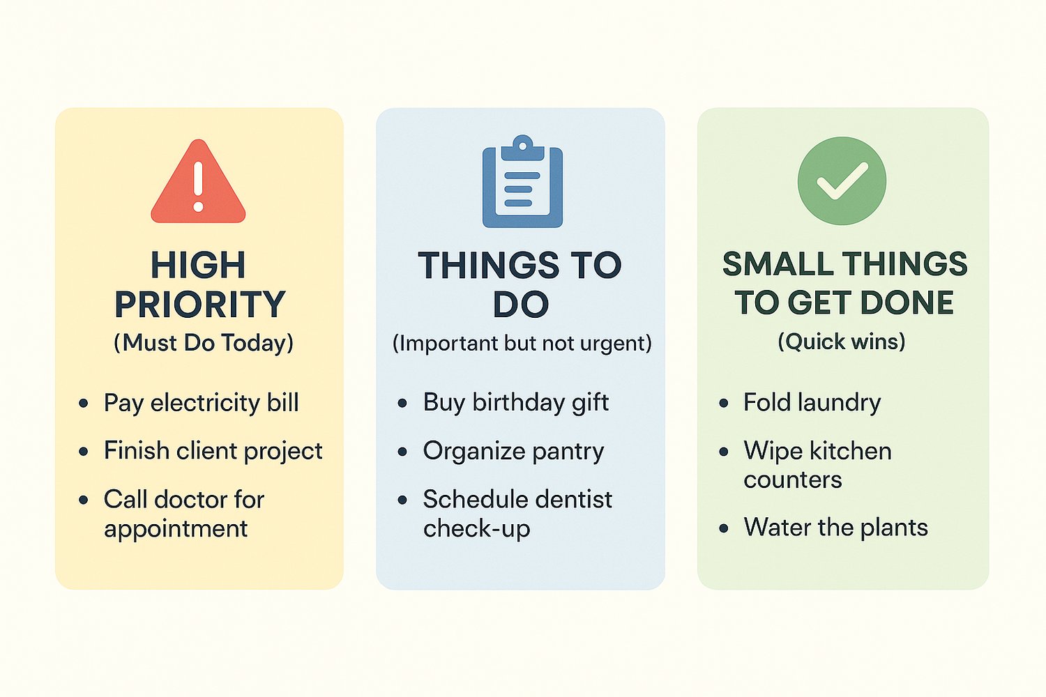 Example: I make a mini list like — "1. Start laundry 2. Answer 2 emails 3. Prep dinner" — and boom, I’m not guessing all day what needs to happen.