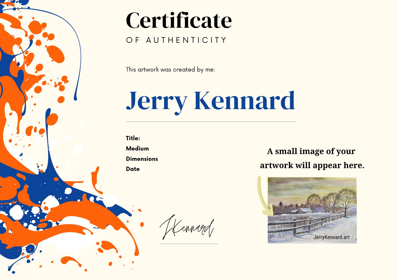 All artwork comes with its own Certificate of Authenticity.