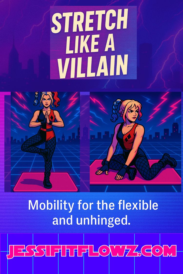 I’m Jessi Flowz. I’m a fitness expert, cosplay model, and the over-40 alt girl your algorithm warned you about. I teach real strength and stretch with zero equipment, zero gatekeeping, and just enough attitude to make you sweat. This isn’t your coach’s glow-up journey. It’s Gotham-level fitness with brat energy.