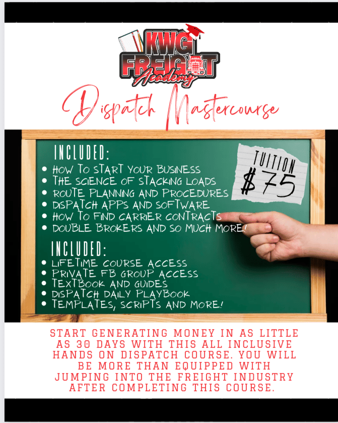 KWG FREIGHT SOLUTIONS is a problem solving multi service company, catering to the needs of freight carriers. We provide solutions in the area of dispatch , compliance , book keeping & business start up. We began as an in house dispatch service solely servicing other owner operators & our own company which in turn allowed us to gross over $350k within our first year and pass our audit with flying colors by having the knowledge of compliance. We are Dedicated to assisting small business owners with starting off the right way and scaling strategically. We execute this with a hands on approach lead by educating our clients with our industry knowledge, using our relation skills to help establish and build relationships in the interest of our carriers & by utilizing our top tier systems and programs that assist in communication, organization & management.