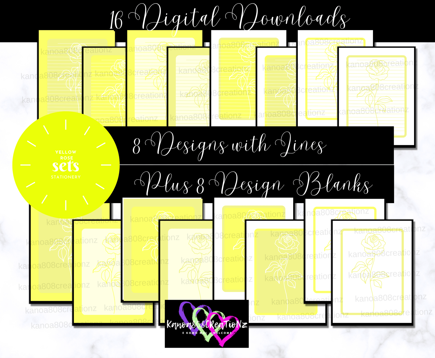 16 Digital Downloadable & Printable FIles: Yellow Roses Stationery Set