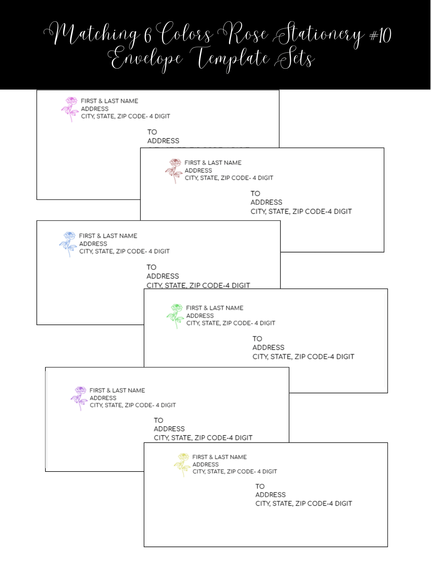 12 Digital Downloadable & Printable Files: Unicorn Colors Borderless Rose Stationery Set