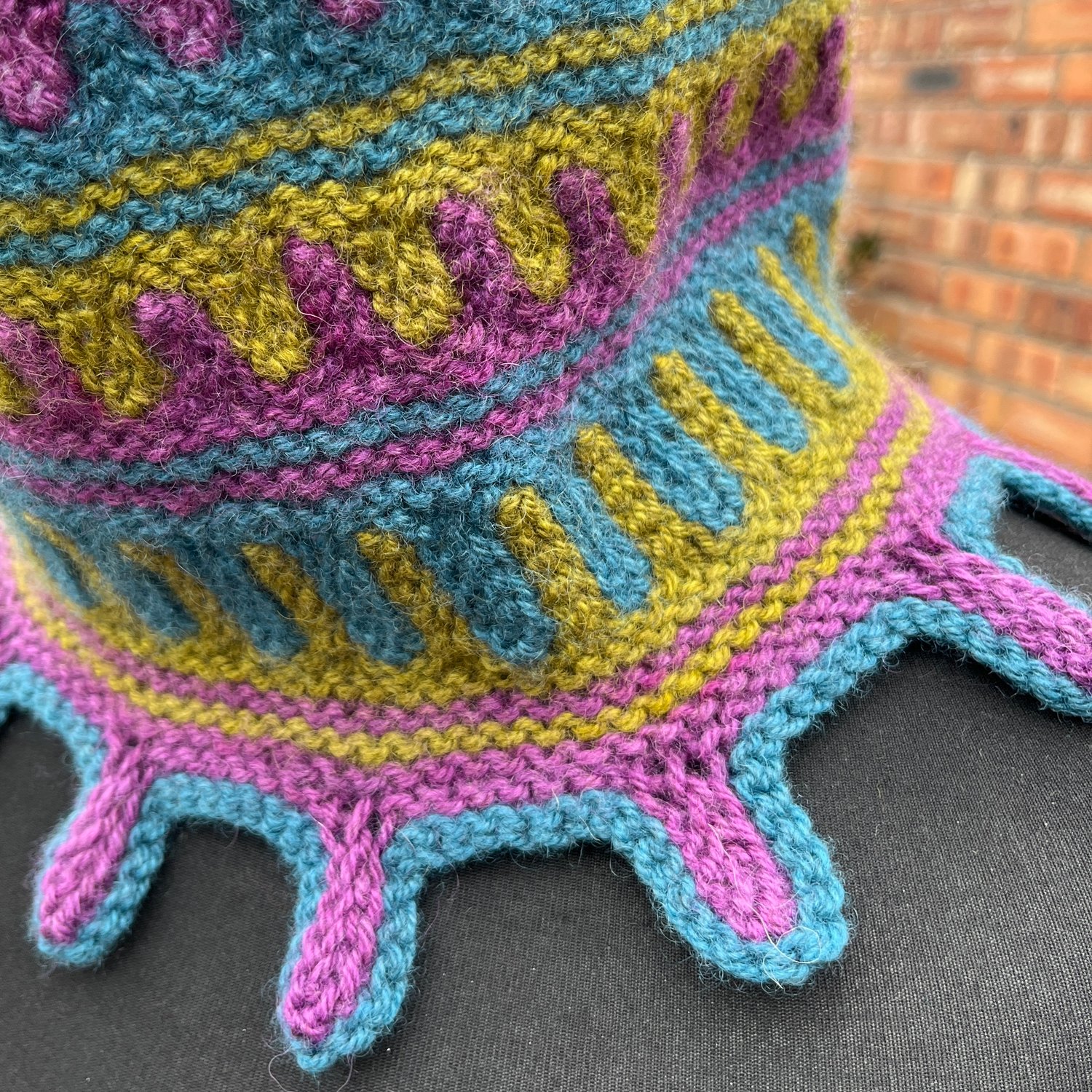 I thoroughly believe in the therapeutic benefits of knitting and am rarely seen without needles in hand. I taught music full-time for 21 years until 2018 when I realised I needed to change the pace and decided to follow my dream of working with yarn full-time and I now design and teach knitting workshops. I love reading both Tudor and science-fiction, exploring ever more of the amazing Welsh countryside with my wife and experimenting with vegan cookery.