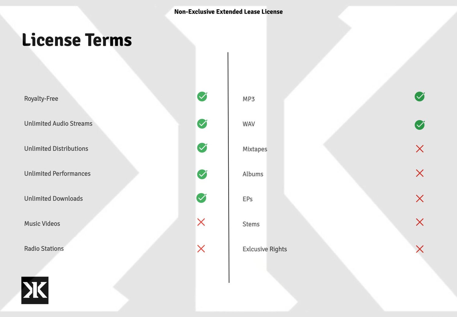 This Non-Exclusive Royalty-Free Extended Lease License Agreement (referred to as the "Agreement") is entered into and effective as of [CONTRACT DATE] (the "Effective Date") by and between Karvin Lazare, also known as KayLaz (hereinafter referred to as the "Producer" or "Licensor"), and [CUSTOMER FULL NAME], residing in [CUSTOMER CITIY, COUNTRY] (hereinafter referred to as "You" or "Licensee"). This Agreement establishes the terms and conditions under which the Licensee is permitted to use the Producer's instrumental music file titled [PRODUCT_TITLE] (referred to as the "Beat"). In exchange for the use of the Beat, the Licensee agrees to pay a monthly fee of $2.99 (USD) (the "License Fee") on an "Royalty-Free Extended Lease" basis.