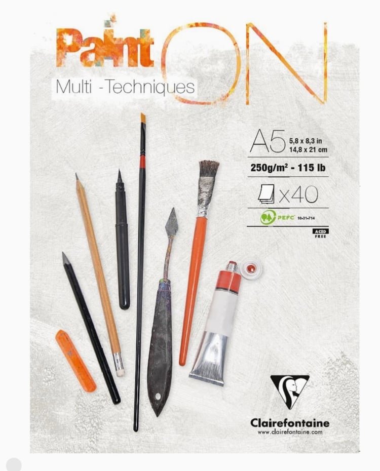 Pieni (A5) taiteilijalehtiö on ihana mukana matkalla! Voit sommitella kuiteista ja matkan mainoksista ja esitteistä minikollaaseja tai maalata akryyleillä pikamaisemia.