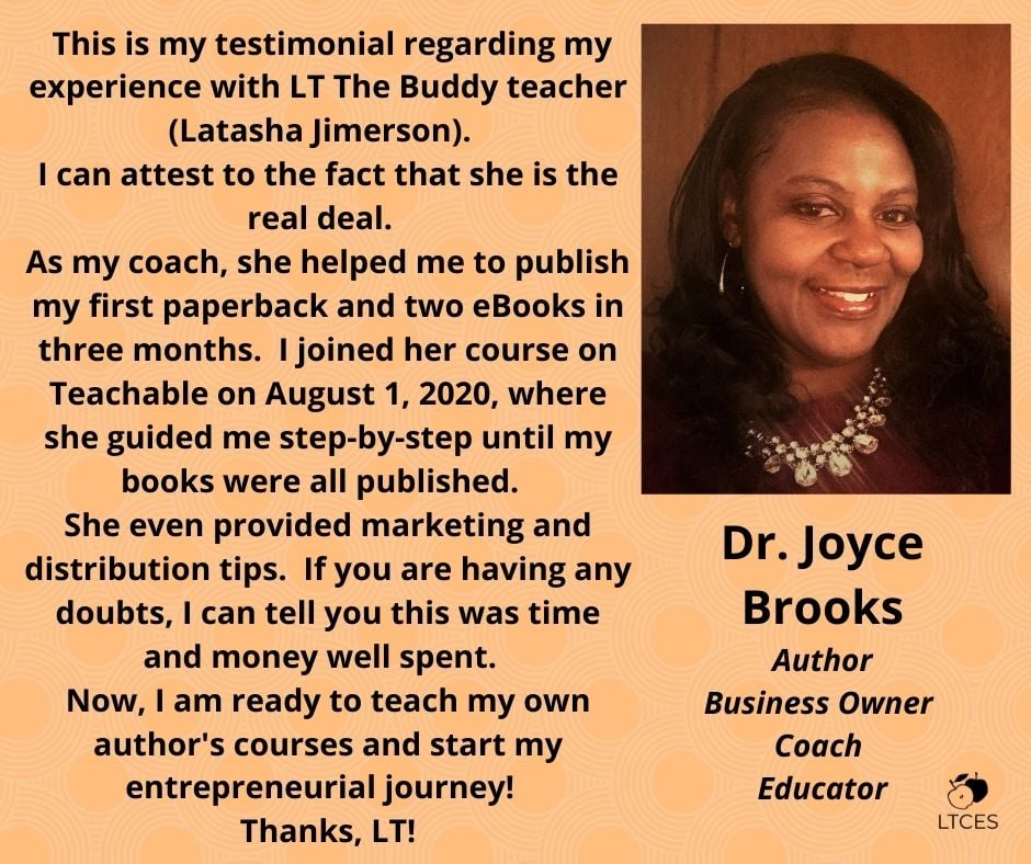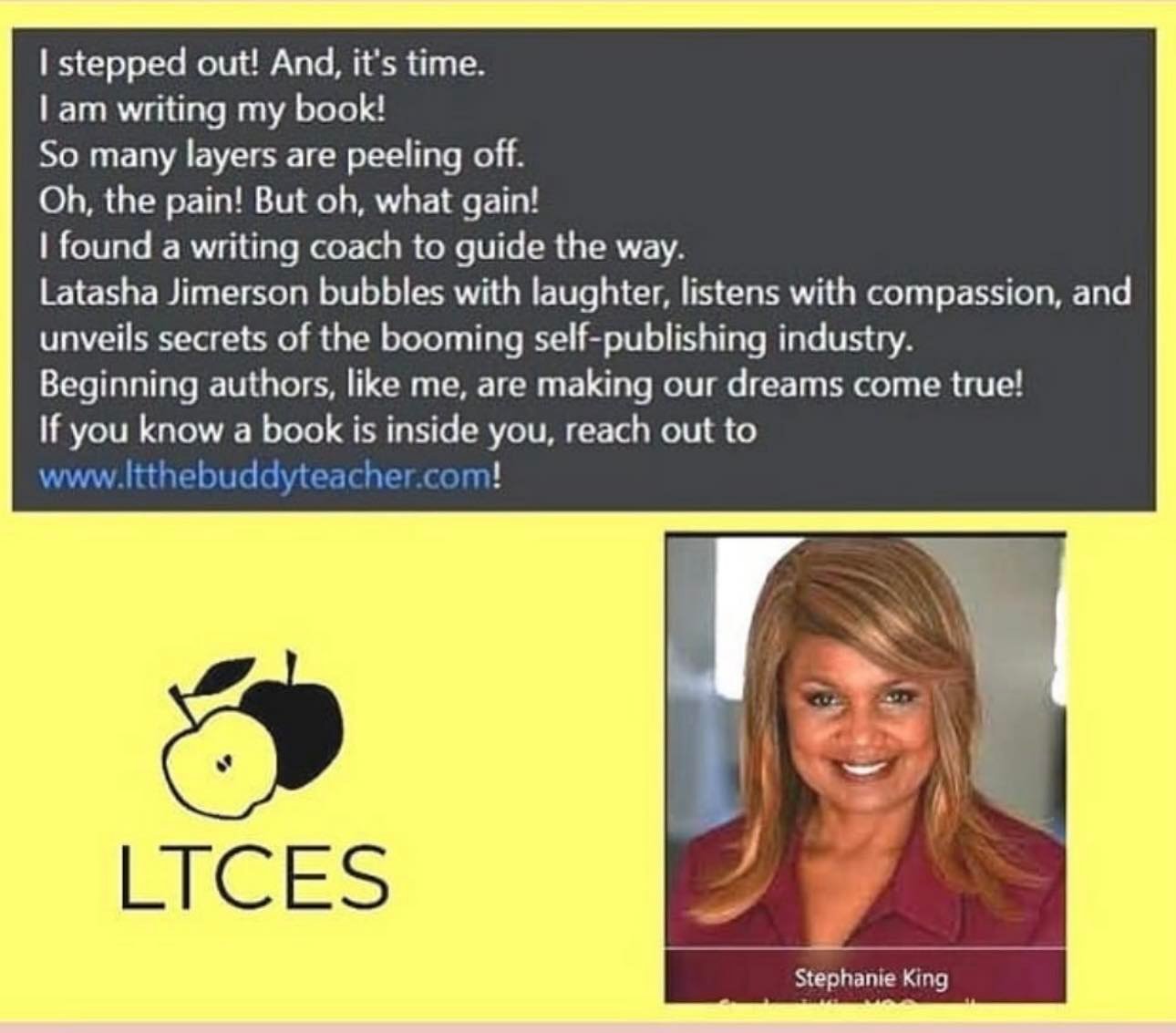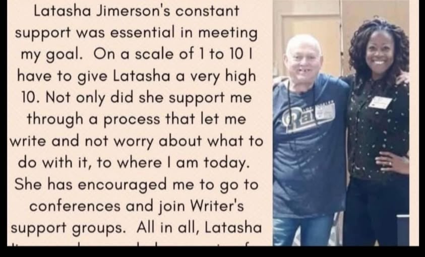 Latasha Jimerson is an 8X self-published author, author coach, and keynote speaker who helps aspiring writers turn ideas into published books—fast. A retired English teacher, she has helped 50+ writers successfully write, publish, and launch their books using clear, step-by-step systems that eliminate overwhelm.