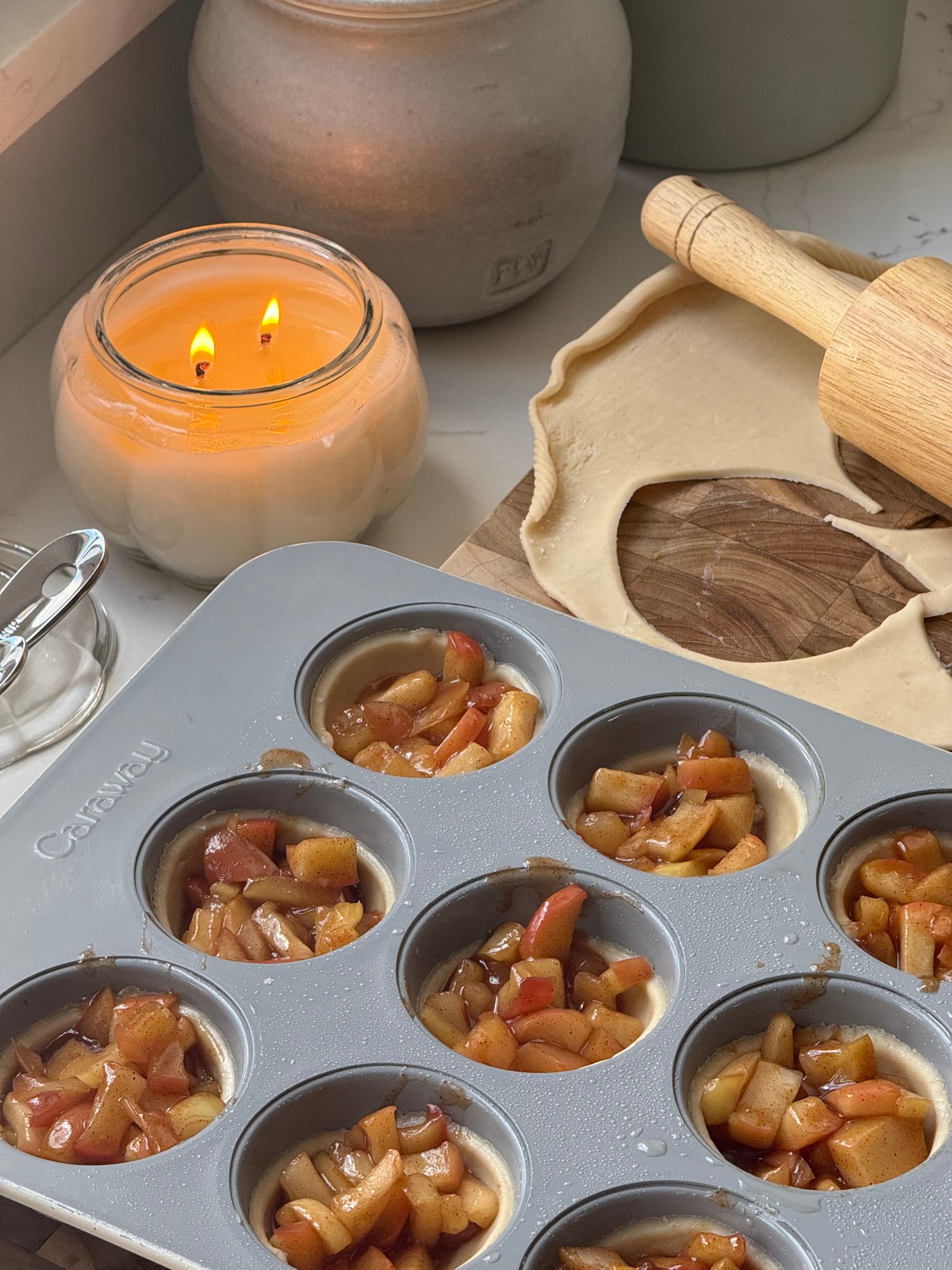Ingredients For the pies 2 sheets premade pie dough, thawed3 medium apples, diced into small cubes2 tbsp unsalted butter⅓ cup brown sugar1 tsp cinnamon1 tbsp flour1 tsp lemon juicePinch of salt For the crumble topping ¼ cup all-purpose flour¼ cup br...
