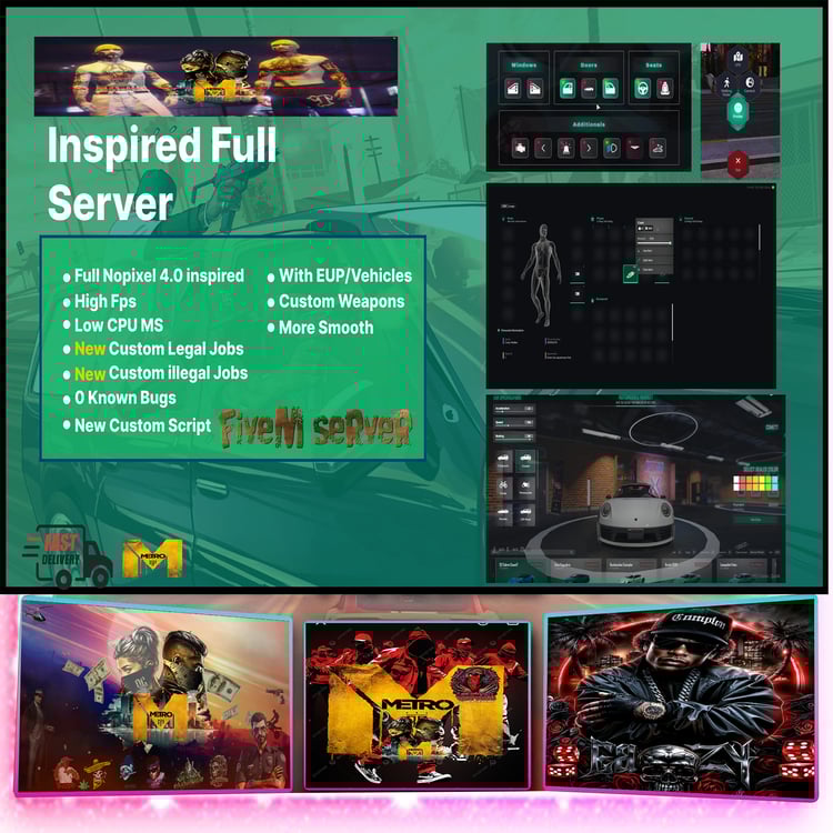 Hello, I've been working as a FiveM Developer for the past 8 years now. I can do EVERYTHING FiveM Related. If you want a professional server made i'll be the perfect guy for you! I can make servers on diffrent custom maps as well, use custom cars, custom sounds, custom mlos, custom guns etc. I'll make your server as realistic as possible so you can have the best roleplay experience. If you are looking for something else I'm always open for custom orders so just send me a message! 24/7 ONLINE