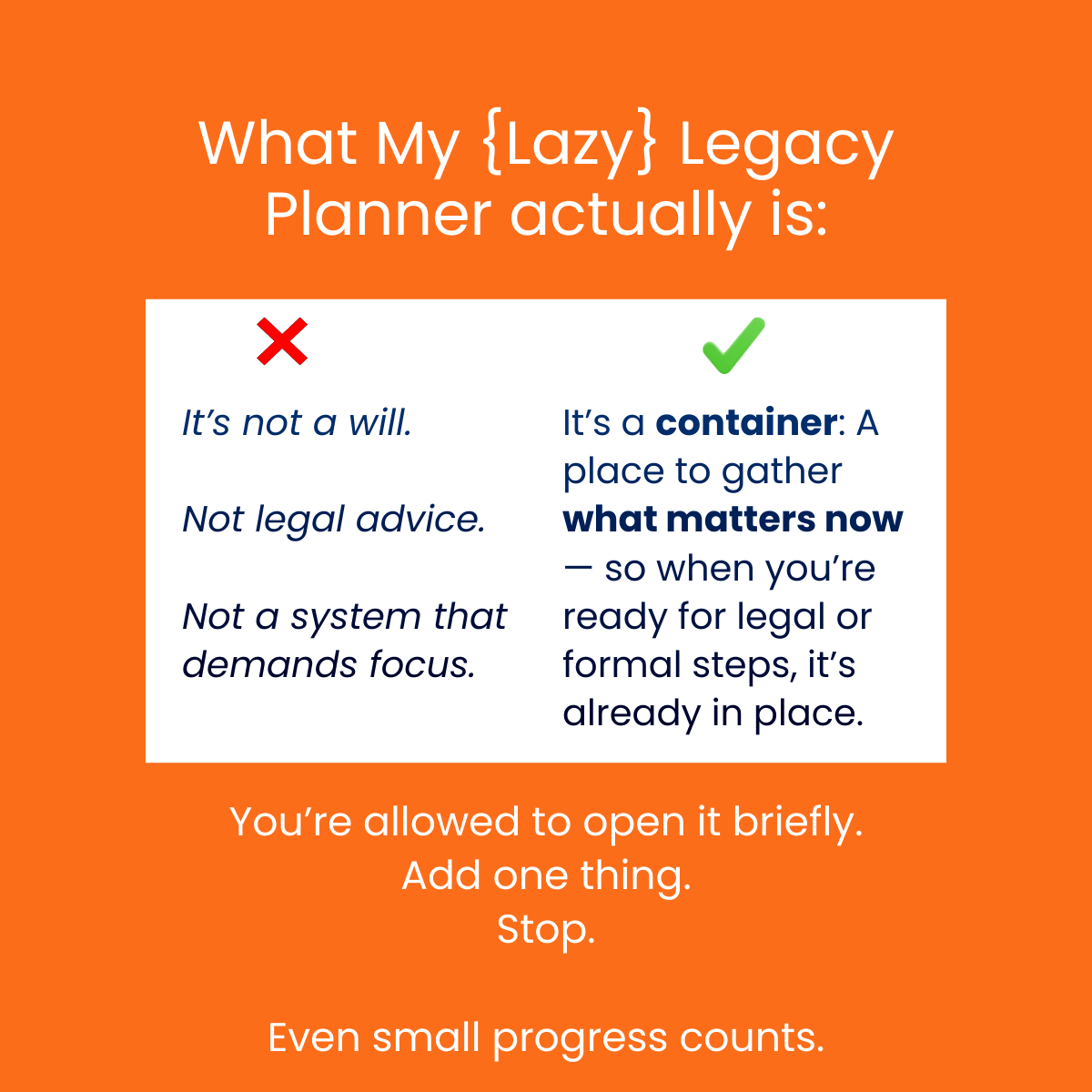 Not a legal document. Not homework. Just something you can open, start, and feel better about in under 10 minutes. Even completing one prompt today creates a mental shift. Use it yourself or gift it to someone who keeps putting this off.