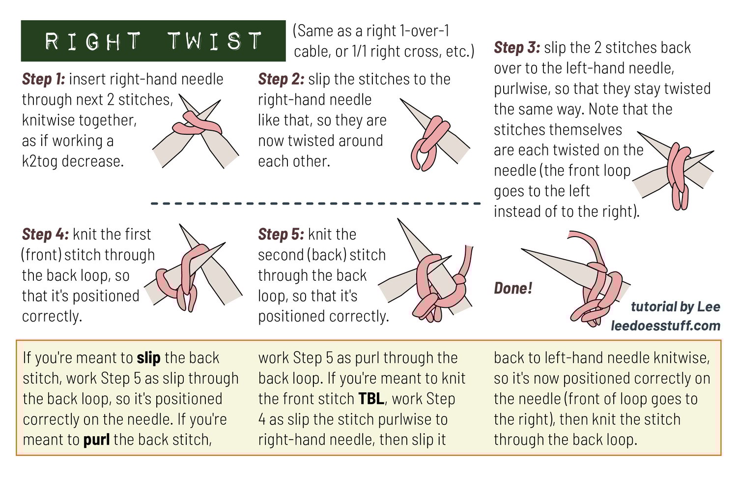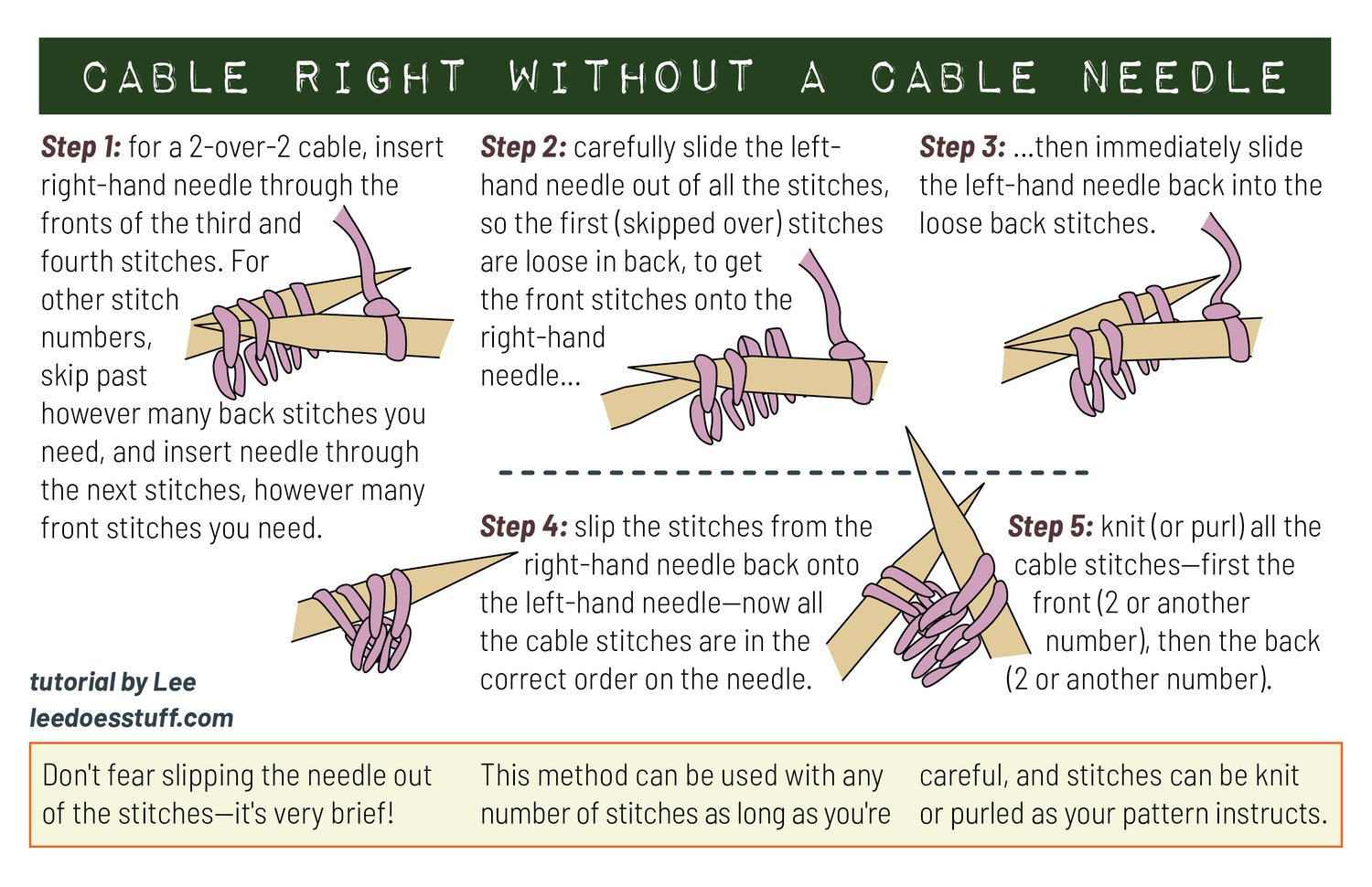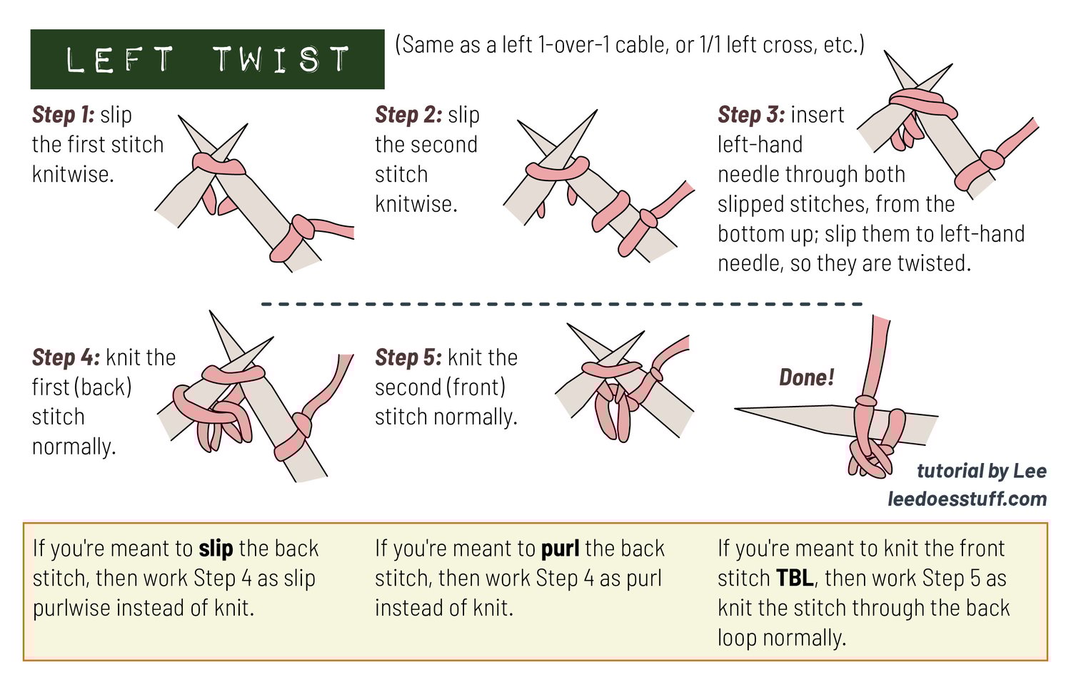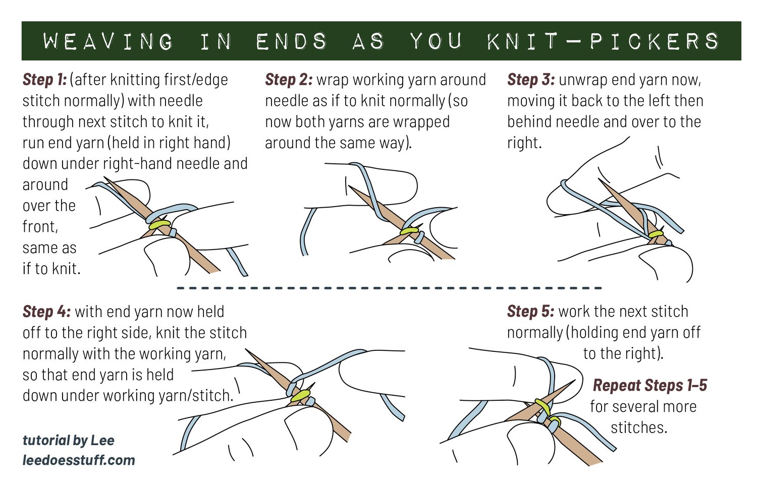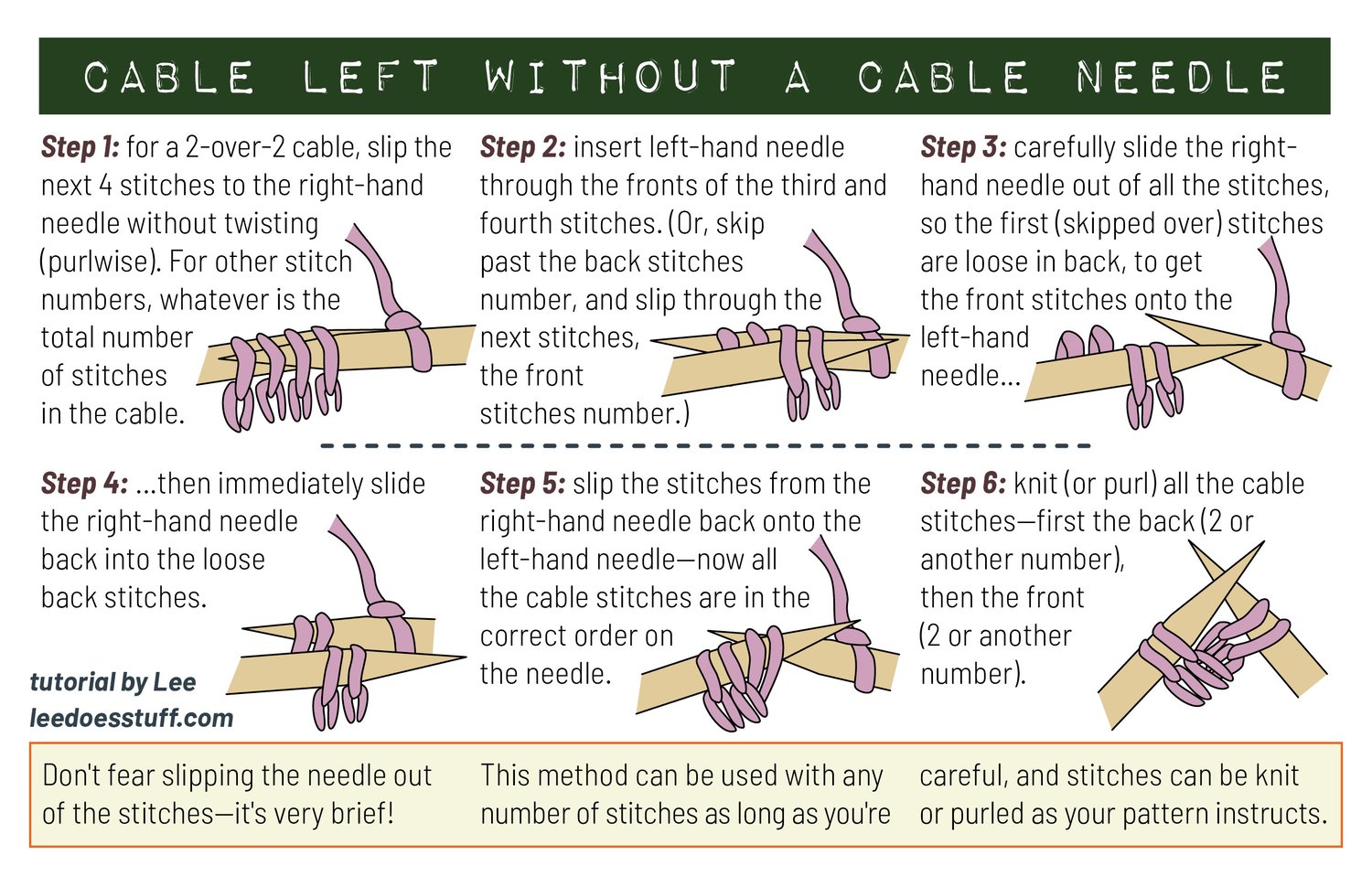 Here are some illustrated diagram tutorials, plus some links to videos or other kinds of tutorials, for various knitting techniques, some newer and some very old. (For old videos, ignore the "leethalknits.com" and other old branding—you are currently on my working knitting website!)