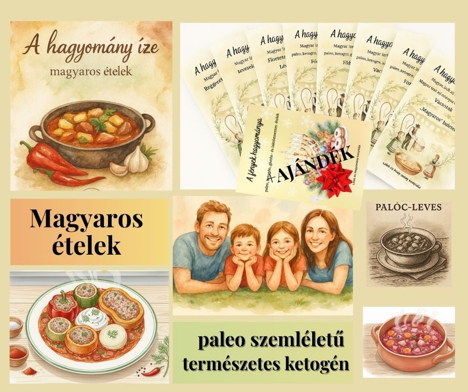 Magyaros ízek újragondolva – paleo szemléletű természetes ketogén és szénhidrát-csökkentett változatban. 9 akvarell-illusztrált receptfüzet egy csomagban. Most ajándék: Fények hagyománya kiadvány.