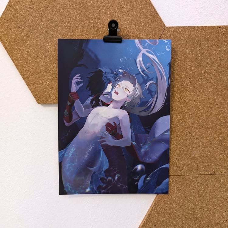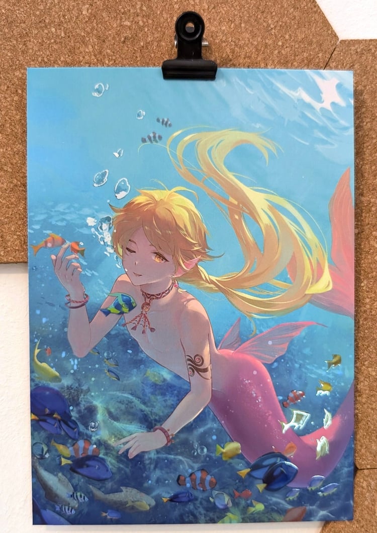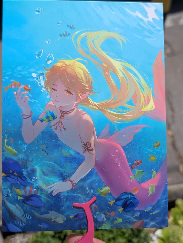 I finally received my first batch of prints from Vograce, and I’m thrilled with how they turned out. I went with a matte coating and the Aether Mermen solo piece includes UV elements that catch the light beautifully. The size is a bit unconventional - 12.7 by 17.8 cm - but it looks as a nice upgrade over A6. The print quality is noticeably better than what I got from my local shop, which I had to give up on after several rounds of testing.