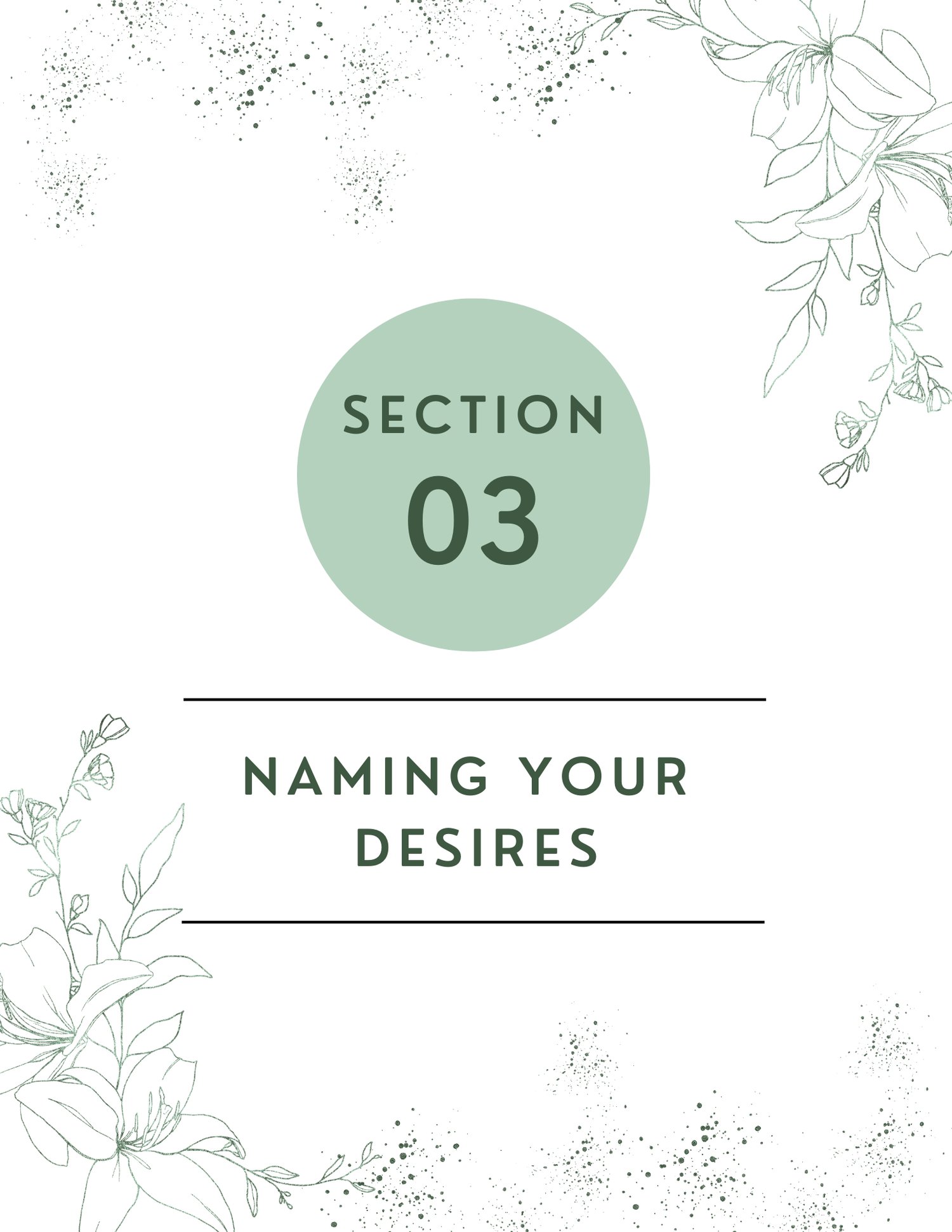 • Naming Your Desires (Section 03): Identify the longing that keeps nudging you and take small steps toward a trusted future.